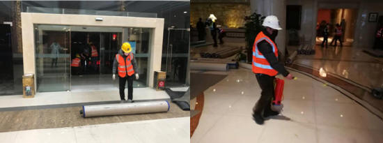 襄陽市抗擊新型冠狀病毒肺炎的形勢(shì)依然嚴(yán)峻,為更好的遏制疫情蔓延,更好的治療感染患者,襄陽市決定將共享國際大酒店和襄城區(qū)城市名人酒店改造后作為密切接觸人員隔離點(diǎn)。而這項(xiàng)“戰(zhàn)疫”任務(wù),交由市政公司完成!耙咔榫褪敲 防控就是責(zé)任” ,襄陽市政建設(shè)集團(tuán)有限公司在接到共享國際大酒店和襄城區(qū)城市名人酒店地面改造任務(wù)后,在市政公司領(lǐng)導(dǎo)的統(tǒng)一安排部署下,立即克服種種困難,組織人力物力,投入到施工任務(wù)中。在改造任務(wù)中,共享國際大酒店需對(duì)6至16樓共計(jì)210間房間進(jìn)行改造,城市名人酒店需對(duì)2至9樓共計(jì)146間房間進(jìn)行改造。時(shí)間緊,任務(wù)重,施工專班決定兵分兩路,一路立即前往隨州進(jìn)行物資采購運(yùn)輸,一路立即前往施工現(xiàn)場勘察,做施工前準(zhǔn)備工作。前往隨州緊急購買調(diào)運(yùn)的醫(yī)用PVC地板已于凌晨全部抵達(dá)施工現(xiàn)場,而早已從各處趕來的70多位襄陽市政建設(shè)集團(tuán)的“逆行者”們一直在施工現(xiàn)場枕戈待命,在凌晨物質(zhì)抵達(dá)后立即投入到酒店改造施工任務(wù)中。