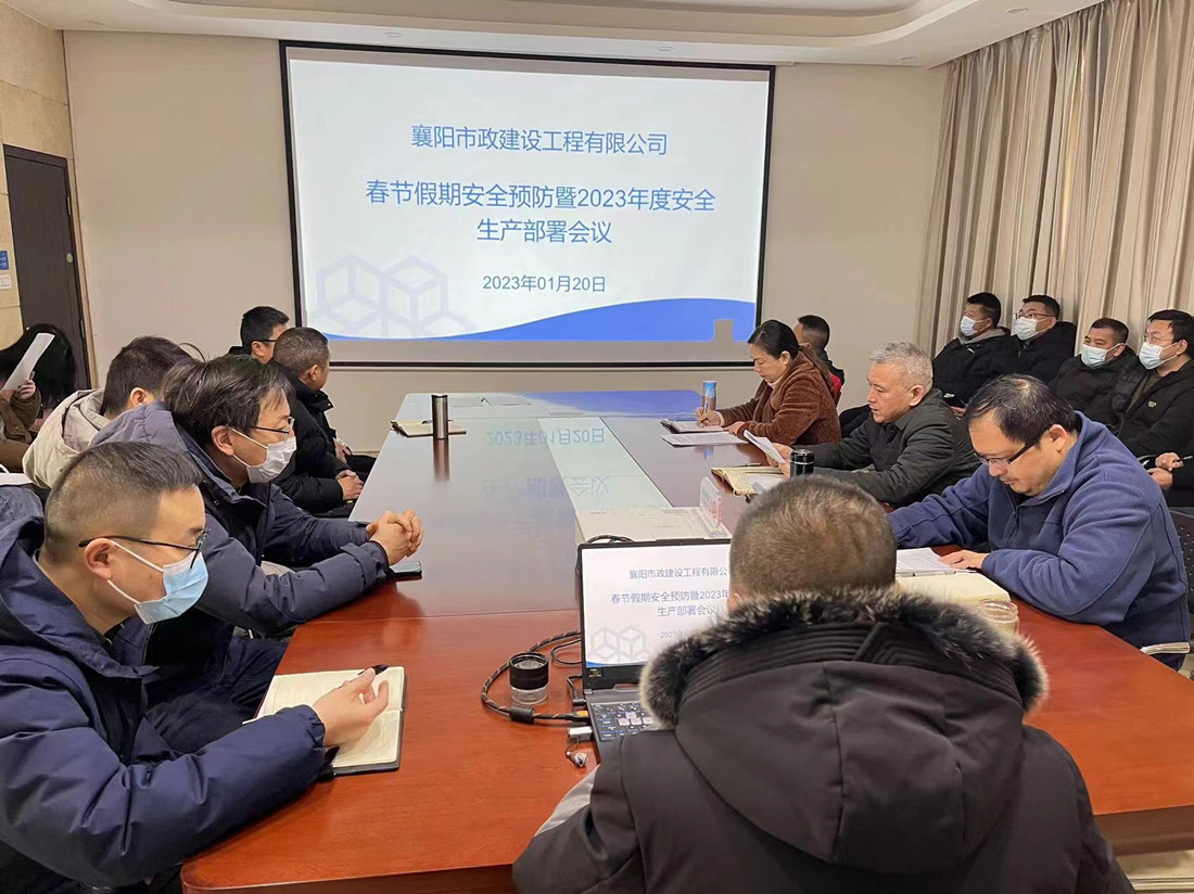 春節(jié)來臨之際,襄陽市政建設(shè)工程有限公司召開春節(jié)假期安全預(yù)防暨2023年度安全生產(chǎn)部署會(huì)議,各項(xiàng)目經(jīng)理、項(xiàng)目總工及關(guān)鍵崗位人員參會(huì)。
