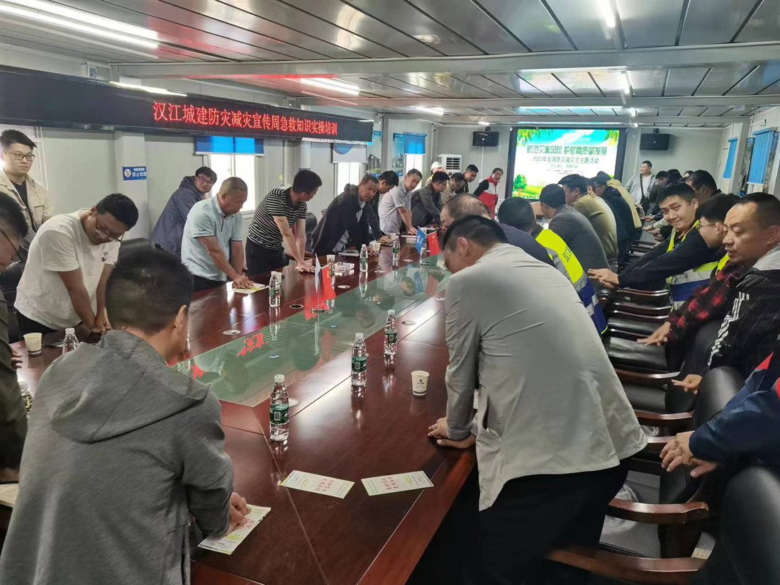 為深入貫徹習(xí)近平總書記關(guān)于防災(zāi)減災(zāi)救災(zāi)工作重要論述精神,增強(qiáng)員工自救互救能力,5月9日,漢江城建在湖北文理學(xué)院遷建項(xiàng)目部開展急救知識(shí)實(shí)操培訓(xùn)及消防應(yīng)急演練活動(dòng)。