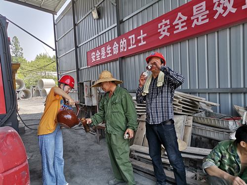 隨著近日溫度的持續(xù)升高,針對廠區(qū)員工高溫下作業(yè)的工作特點(diǎn),為確保夏季高溫期間員工的人身安全及生產(chǎn)的正常運(yùn)行,新材料公司多措并舉,及時(shí)做好高溫天氣下安全生產(chǎn)和防暑降溫工作,通過為員工送防暑藥品,熬制綠豆湯,沖泡涼茶等多種方式,為大家送去清涼。送清涼活動的開展,將組織的貼心慰問、深切關(guān)懷送到一線人員的心坎上,極大的鼓舞了員工士氣,大家紛紛表示要把當(dāng)前工作做好做實(shí),確保夏季生產(chǎn)安全穩(wěn)定運(yùn)行。