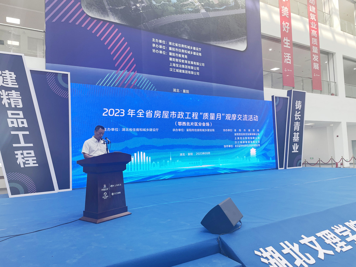 9月22日,2023年全。ǘ跷鞅逼瑓^(qū))住建系統(tǒng)“質(zhì)量月”觀摩交流活動(dòng)在湖北文理學(xué)院遷建項(xiàng)目舉辦。來(lái)自襄陽(yáng)、十堰、隨州、神農(nóng)架、孝感住建部門(mén)負(fù)責(zé)人、質(zhì)監(jiān)站負(fù)責(zé)人和部分項(xiàng)目企業(yè)代表300多人參加。漢江城建黨委副書(shū)記、副董事長(zhǎng)、總經(jīng)理蔡軍作交流發(fā)言。