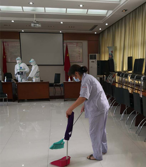 在疫情最嚴重的兩個月里,物業(yè)公司安排人員對集團公司辦公區(qū)和所屬家屬院每天兩遍消毒查殺,對辦公區(qū)及家屬院進行全面清掃,不留死角。復工復產后,在常態(tài)化疫情防控的環(huán)境下,物業(yè)公司組織人員對辦公區(qū)域進行全覆蓋式消殺。對辦公區(qū)的所有空調進行全面的清洗、調試、消毒,不能正常使用的空調組織人員修理。門衛(wèi)處安排專人執(zhí)勤,對進出辦公區(qū)的人員進行登記并測量體溫,做到“體溫必測,口罩必戴”的原則,堅決防止疫情反彈。