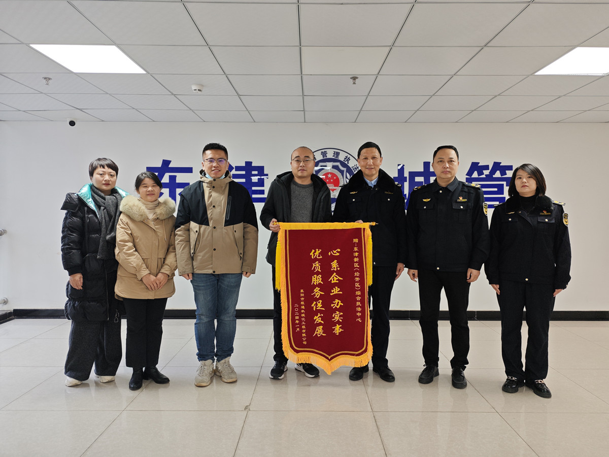 1月29日,程通機(jī)械化公司副總經(jīng)理徐浩一行前往東津新區(qū),向東津新區(qū)(經(jīng)開區(qū))綜合執(zhí)法中心贈送錦旗并表示感謝。
