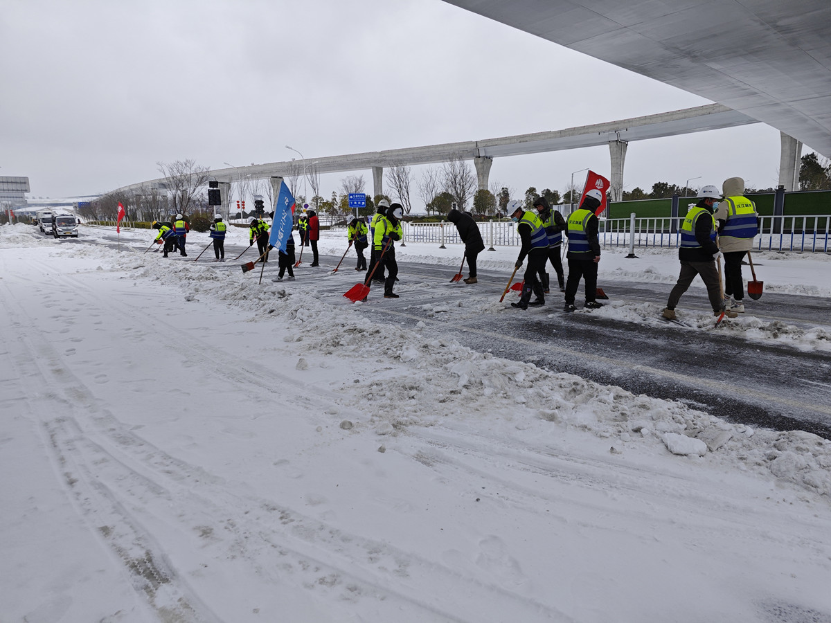 瑞雪迎新春,平安開新局。一夜之間暴雪覆蓋了整座城市,積雪不斷加深,給大家出行帶來極大不便。2月21日,漢江城建集團(tuán)有限公司襄陽職業(yè)技術(shù)學(xué)院東津校區(qū)建設(shè)項(xiàng)目部和襄陽技師學(xué)院二期工程項(xiàng)目部組織管理人員積極響應(yīng)集團(tuán)領(lǐng)導(dǎo)和東津管委會要求,前往東津新區(qū)高鐵南路路段、高鐵南路與現(xiàn)代大道交叉路口參與除雪搶險工作,為路過車輛和居民開辟出了一條干凈、通暢的道路。