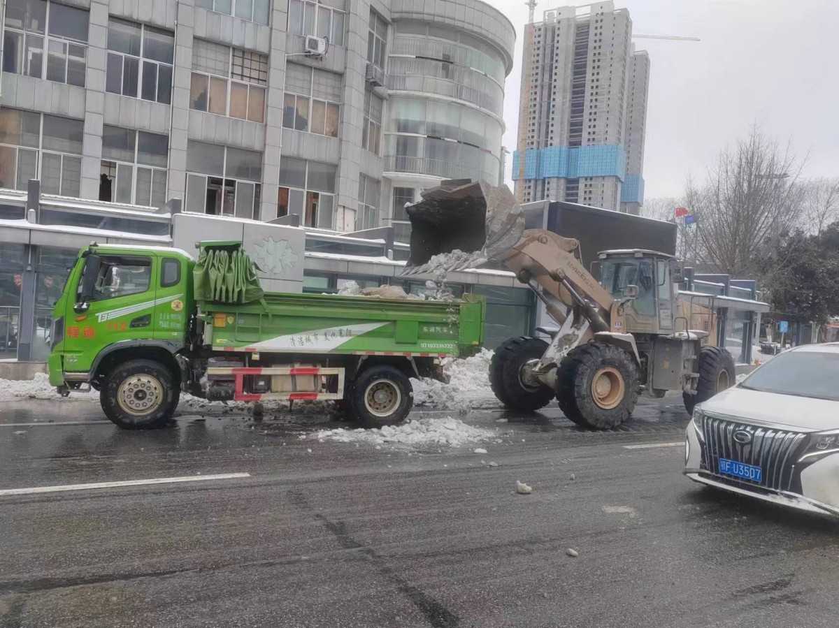 與此同時接令而動,組織人員51余人、鐵鍬50把、城建裝載機(jī)13臺、平地機(jī)2臺、大小型渣土運(yùn)輸車23臺,分別投入到二橋、三橋、五橋、襄城區(qū)龐公及繞城南路、東津鹿門大道、襄陽四中門口、集團(tuán)公司院內(nèi)清掃積雪,保障道路通行。