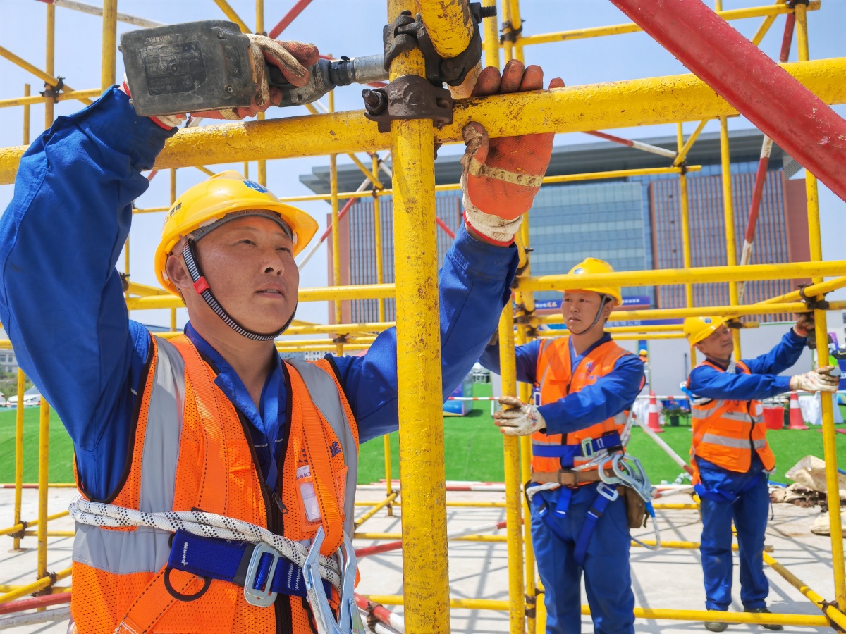 支撐架搭設(shè)競賽共4支參賽隊16名選手參加。大家在緊張的1個小時比賽時間內(nèi)完成了落地式扣件式鋼管腳手架的搭設(shè)。各參賽隊伍操作嫻熟、配合默契、你追我趕,比拼中不忘展示一線建設(shè)人員的專業(yè)素養(yǎng)。最終,建安分公司代表隊榮獲第一名。