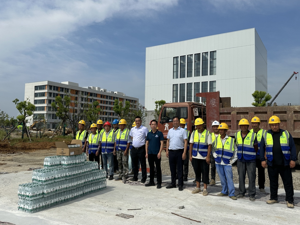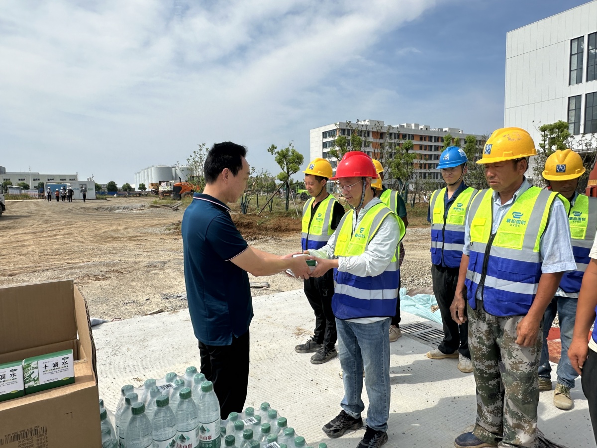 上午10點(diǎn),國創(chuàng)公司班子成員到達(dá)項(xiàng)目工地現(xiàn)場,向辛勤工作的工人們送去了礦泉水、藿香正氣水、十滴水等防暑降溫物資,并叮囑大家在高溫天氣下注意防暑,確保身體健康。