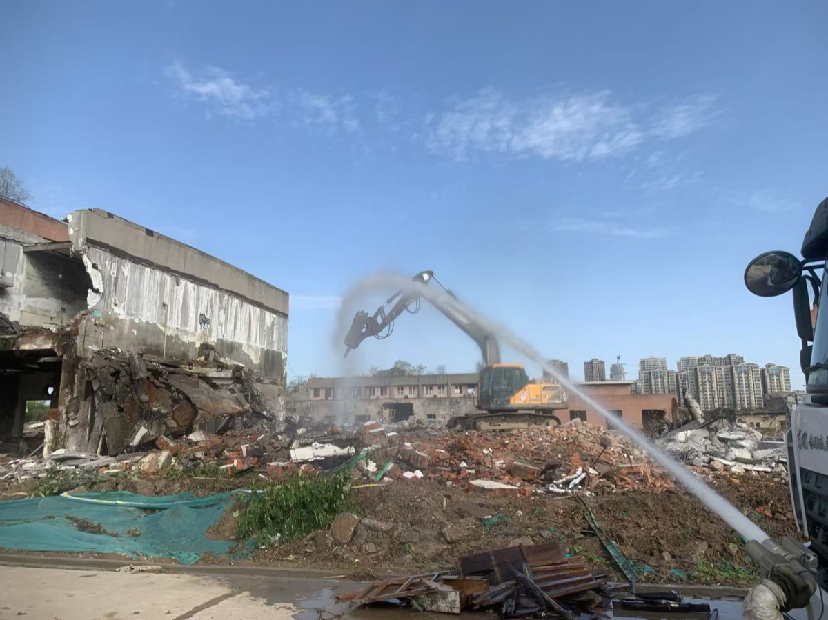 進(jìn)入建筑拆除階段,聯(lián)合體將環(huán)境保護(hù)放在首位,嚴(yán)格落實(shí)“工地8個100%”,采用灑水車濕法作業(yè)方式,通過持續(xù)噴灑水霧,有效抑制了拆除過程中產(chǎn)生的粉塵污染,確保周邊大氣環(huán)境的清潔。此舉不僅彰顯了聯(lián)合體對環(huán)保工作的高度重視,更為同類項(xiàng)目樹立了綠色施工的典范。