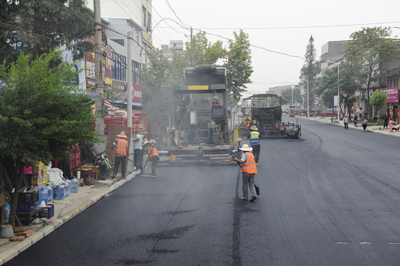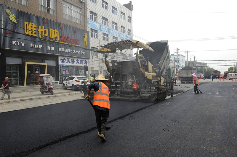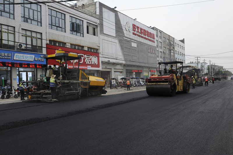 日前,襄城區(qū)歐廟鎮(zhèn)污水管網(wǎng)改造項(xiàng)目現(xiàn)場(chǎng),瀝青攤鋪機(jī)和壓路機(jī)配合作業(yè),施工人員分工有序,緊鑼密鼓地對(duì)道路兩側(cè)便道進(jìn)行瀝青攤鋪。