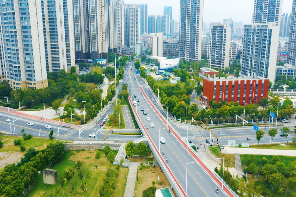 丹江路(長(zhǎng)征路—魚(yú)梁洲大橋)是襄陽(yáng)主城區(qū)連接核心商圈與魚(yú)梁洲生態(tài)綠心的關(guān)鍵交通廊道,肩負(fù)著繁重的人流、車(chē)流疏導(dǎo)任務(wù)。改造前,該路段長(zhǎng)期受困于道路狹窄、通行能力不足等瓶頸。為破解這一民生痛點(diǎn),提升道路通行品質(zhì)與城市功能能級(jí),該工程被納入市級(jí)重點(diǎn)民生工程推進(jìn)實(shí)施,全長(zhǎng)1235米,核心涵蓋道路拓寬、雨水管網(wǎng)新建、照明系統(tǒng)升級(jí)、交通組織優(yōu)化及綠化配套完善等關(guān)鍵任務(wù)。工程竣工投用后,通行條件與環(huán)境品質(zhì)實(shí)現(xiàn)質(zhì)的飛躍。拓寬后的道路采用雙向四車(chē)道標(biāo)準(zhǔn),配套2.9米至3.5米寬騎行道,成功緩解擁堵,顯著提升區(qū)域通行效率;全線瀝青路面平整密實(shí),行車(chē)舒適度與耐久性大幅提升;新增的堤頂人行梯道融合傳統(tǒng)工藝與現(xiàn)代審美,成為城市景觀新亮點(diǎn);多功能智慧燈桿整合多項(xiàng)功能,減少重復(fù)建設(shè)的同時(shí),助力提升城市精細(xì)化管理水平。
