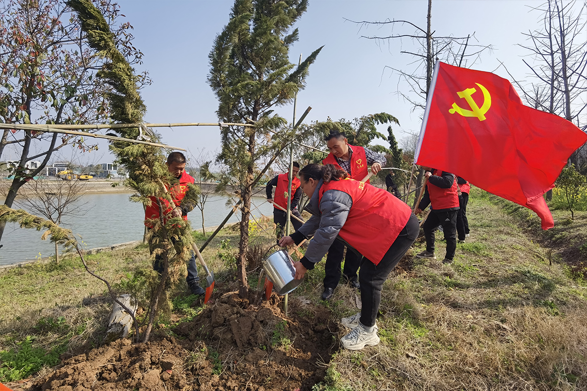 新材料公司、第三分公司:3月10日下午,新材料公司黨支部聯(lián)合漢江城建第三分公司黨支部組織全體黨員干部、青年志愿者在廠區(qū)內(nèi)開展“黨旗引領(lǐng)生態(tài)綠,植樹共筑家園美”活動(dòng),以實(shí)際行動(dòng)為家園添綠,讓黨性教育在生態(tài)實(shí)踐中落地生根。活動(dòng)現(xiàn)場(chǎng),大家分工明確、配合默契,揮鍬鏟土、扶苗定根、培土圍堰、提水澆灌,每一個(gè)環(huán)節(jié)都認(rèn)真細(xì)致,歡聲笑語間,新栽苗木錯(cuò)落有致、迎風(fēng)挺立,與飄揚(yáng)的黨旗、忙碌的身影相映成景。此次植樹活動(dòng)以“黨建+生態(tài)”的創(chuàng)新模式,將義務(wù)植樹與黨性教育深度融合,活動(dòng)期間共栽種各類苗木20余株。黨員干部在勞動(dòng)實(shí)踐中錘煉了黨性、提升了素養(yǎng),讓“綠水青山就是金山銀山”的理念更加深入人心。