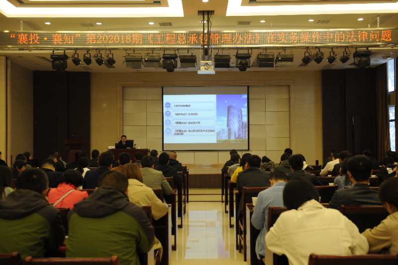 10月22日上午,第十八期“襄投·襄知”培訓(xùn)在集團大禮堂開講,主題為《工程總承包管理辦法》在實務(wù)操作中的法律問題。本期培訓(xùn)由市政集團承辦,特邀湖北文理學(xué)院政法學(xué)院副教授、湖北忠三(襄陽)律師事務(wù)所律師李華義主講,集團各部室、各子公司共120余人參加。