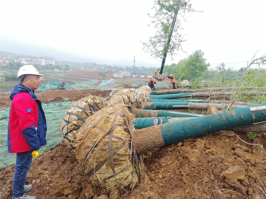 在進行完上土作業(yè)、表土清理等工作之后,襄水源項目部為確保工程質(zhì)量,進場苗木嚴格按照規(guī)范要求,對每棵苗木進行胸徑和冠幅實地檢驗,精選優(yōu)質(zhì)苗木。項目做到及時栽植,及時養(yǎng)護,保證樹苗的存活率和景觀效果,為把老百姓說的“湛山大坑”變?yōu)閺V場花園而努力。
