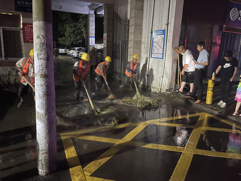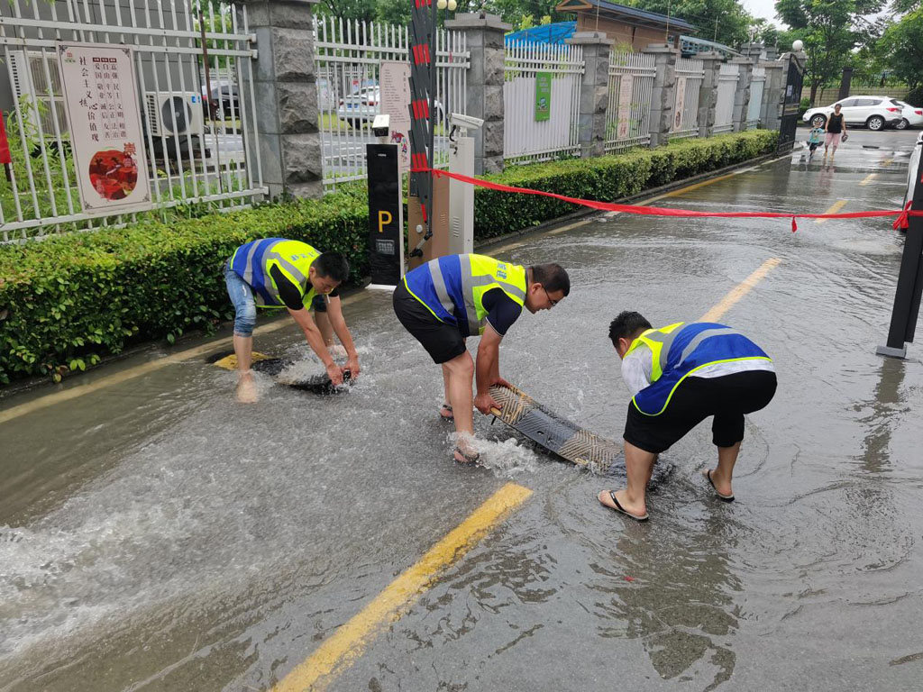 四季青項(xiàng)目部組織人員參與江華小區(qū)周邊排澇搶險(xiǎn)及協(xié)助小區(qū)安裝臨時(shí)防護(hù)設(shè)施