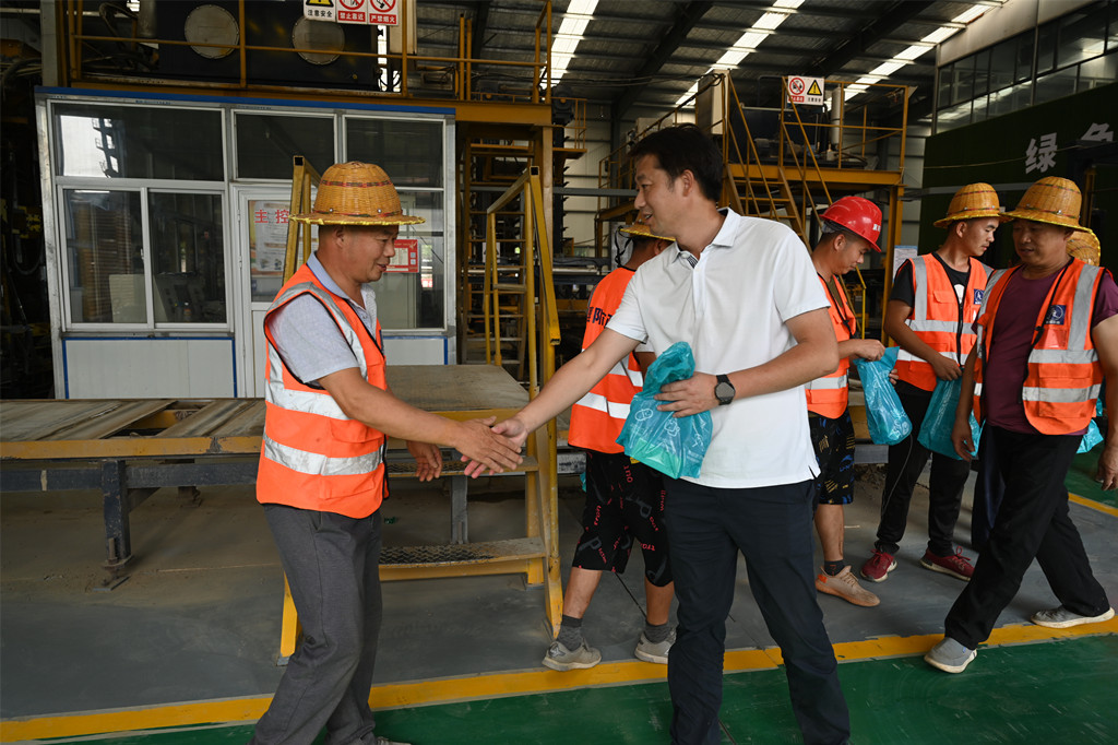 近日,高溫酷暑天氣持續(xù)不減,為進(jìn)一步關(guān)心廣大一線職工的生命安全和身體健康,有效預(yù)防高溫中暑和各類事故發(fā)生,7月28 日,漢江城建黨委書記、董事長盧國宏、黨委副書記、副董事長、總經(jīng)理蔡軍等公司領(lǐng)導(dǎo)分別組成7隊慰問組深入基層生產(chǎn)單位和工程項目施工現(xiàn)場,慰問奮戰(zhàn)在一線的職工,為大家送上防暑降溫物品。