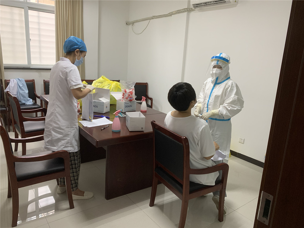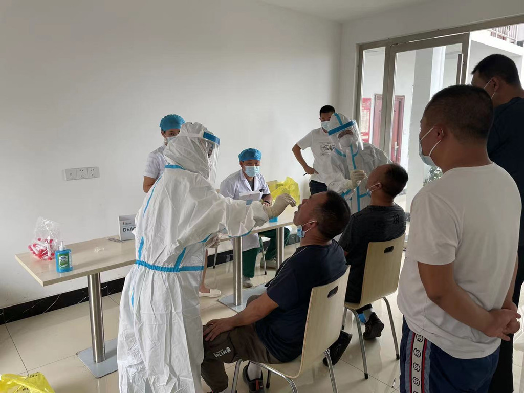 檢測(cè)采樣現(xiàn)場(chǎng),工作人員井然有序地組織分組排序、信息采集、掃碼登記及樣本采集,各個(gè)環(huán)節(jié)配合密切、銜接有序,最大限度地提高檢測(cè)工作效率。為有效緩解核酸檢測(cè)工作人員不足的壓力,各部門(mén)、各分(子)公司志愿者奔赴核酸檢測(cè)一線,在露天場(chǎng)地冒著酷暑,幫助勞務(wù)人員手動(dòng)錄入信息,以實(shí)際行動(dòng)詮釋國(guó)企員工的責(zé)任擔(dān)當(dāng)。經(jīng)過(guò)大家的共同努力,共完成約1000多名員工核酸檢測(cè)。次日,經(jīng)醫(yī)務(wù)人員檢測(cè)顯示,結(jié)果全部為陰性。