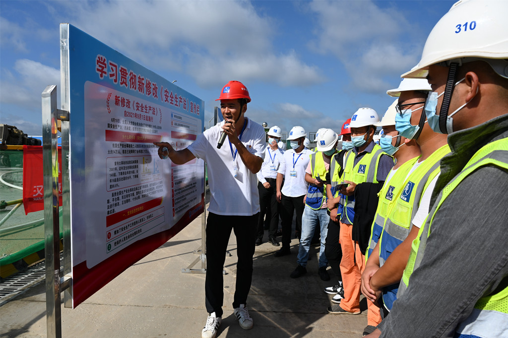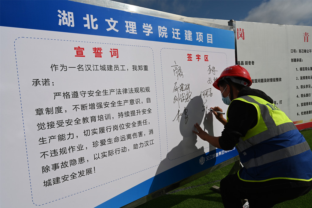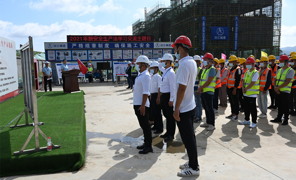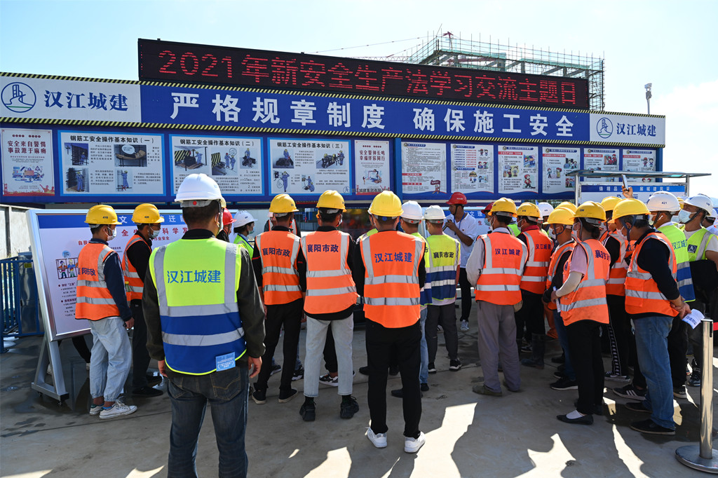 為認(rèn)真貫徹落實(shí)新《安全生產(chǎn)法》,深入開展安全生產(chǎn)法宣傳教育,進(jìn)一步樹牢安全發(fā)展理念,增強(qiáng)管理人員和工友們的安全意識(shí),9月29日上午,湖北文理學(xué)院遷建項(xiàng)目項(xiàng)目部舉行“新安全法學(xué)習(xí)交流主題日”活動(dòng)。漢江城建質(zhì)量安全環(huán)保部部長吳斌、副部長謝翔參加了本次活動(dòng)。