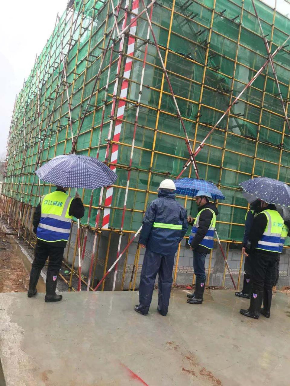 為充分應(yīng)對(duì)惡劣天氣,湖北文理學(xué)院遷建項(xiàng)目部迅速行動(dòng),由項(xiàng)目經(jīng)理帶隊(duì),嚴(yán)格按照《湖北省房屋市政工程建設(shè)施工現(xiàn)場不良?xì)夂蚝蜆O端天氣預(yù)警應(yīng)急響應(yīng)指南》要求,認(rèn)真抓好貫徹落實(shí),及時(shí)收集和傳送災(zāi)害天氣預(yù)警預(yù)報(bào)信息,加強(qiáng)現(xiàn)場檢查巡查。特別是對(duì)腳手架基礎(chǔ)沉降、臨時(shí)圍擋、起重機(jī)械、臨時(shí)用電設(shè)施防水防觸電等部位進(jìn)行重點(diǎn)檢查。