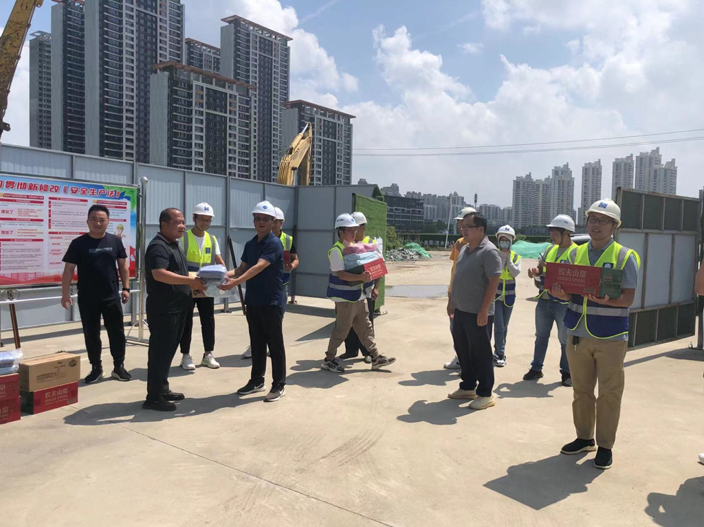 6月21日,黨委委員、董事謝鋒為望城路項目施工一線人員送來降溫防暑物資,并對在高溫下依然堅守在崗位上的一線管理人員和施工人員的工作表示肯定與贊許。慰問活動結(jié)束后,謝鋒一行還深入到08片區(qū)施工現(xiàn)場,看望慰問奮戰(zhàn)在高溫一線的施工人員,囑咐項目管理人員合理安排工作,注意勞逸結(jié)合。