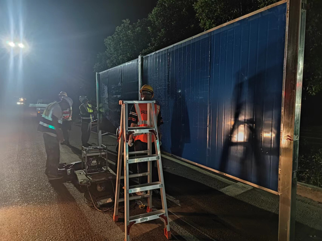 交安公司管理人員夙興夜寐,充分發(fā)揮漢江城建鐵軍精神,克服照明困難,組織施工人員連夜加班對南漳發(fā)展大道改建項目進(jìn)行圍擋安裝。將施工現(xiàn)場和外部環(huán)境隔離開來,從而保證了施工現(xiàn)場的安全,施工人員在哪里,管理人員就在哪里。
