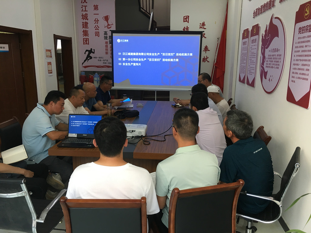 為貫徹落實漢江城建《安全生產“百日雙掃”活動實施方案》。8月5日,一公司召開“百日雙掃”工作推進會,會議由一公司經理王強主持,副經理鄒新建、馬朝剛,各項目負責人和安全員參加會議。