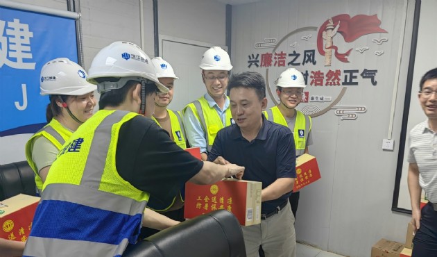 8月9日下午,襄陽市總工會副主席孫俊峰一行來到襄陽技師學院二期工程開展“夏日送清涼”慰問活動,對在高溫下堅守崗位