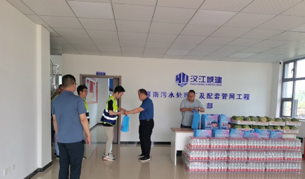 7月10日上午,集團(tuán)黨委委員、董事謝鋒一行深入襄南污水處理廠及配套管網(wǎng)項(xiàng)目,為奮戰(zhàn)在作業(yè)一線的員工送來了礦泉水等防暑降溫物品