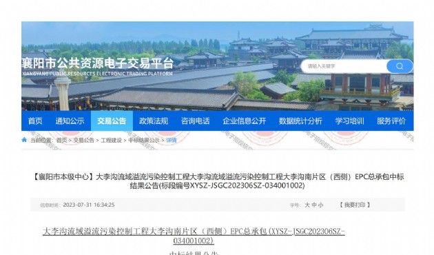 2023年7月31日,漢江城建集團(tuán)有限公司牽頭中標(biāo)大李溝流域溢流污染控制工程大李溝南片區(qū)(西側(cè))EPC總承包項(xiàng)目(以下稱“本項(xiàng)