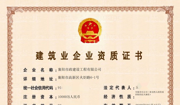 6月19日,經(jīng)湖北省住房和城鄉(xiāng)建設(shè)廳核準(zhǔn),市政公司申報(bào)的建筑工程施工總承包貳級(jí)、市政公用工程施工總承包貳級(jí)、隧道工程專業(yè)承包