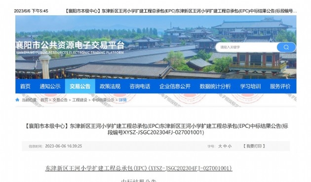 6月6日,漢江城建集團(tuán)有限公司牽頭中標(biāo)東津新區(qū)王河小學(xué)擴(kuò)建工程總承包(EPC)項(xiàng)目,中標(biāo)金額3590.57萬(wàn)元,建設(shè)工期300天。該項(xiàng)目位