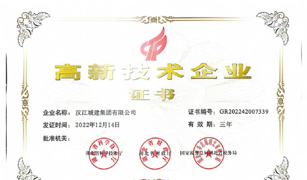 漢江城建集團有限公司 榮獲“國家高新技術企業(yè)”稱號