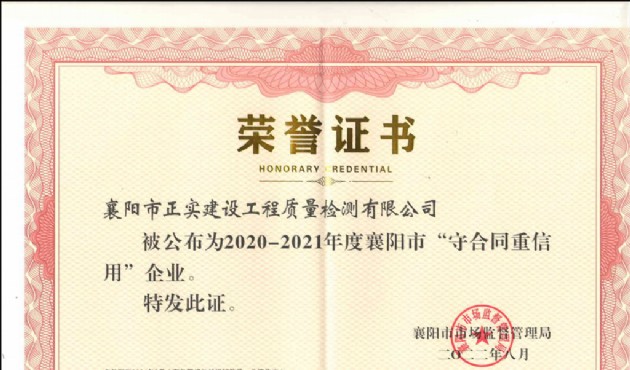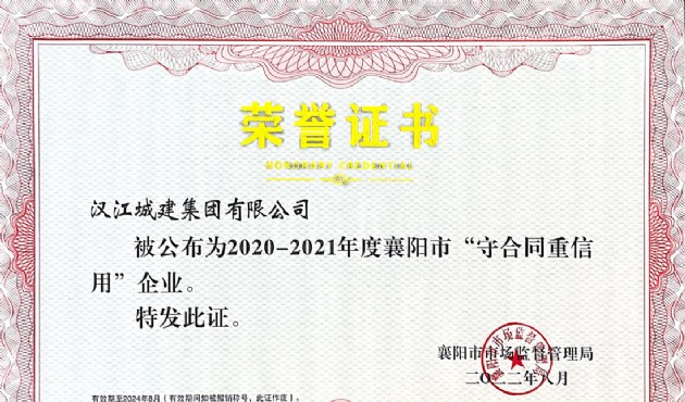 襄陽(yáng)市政建設(shè)工程有限公司獲“2020-2021年度守合同重信用企業(yè)”榮譽(yù)稱號(hào)