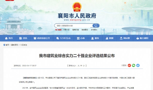 喜訊!漢江城建榮獲襄陽市建筑業(yè)企業(yè)綜合實力二十強