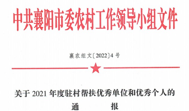 近日,中共襄陽市委農(nóng)村工作領(lǐng)導小組發(fā)布了《關(guān)于2021年度駐村幫扶優(yōu)秀單位和優(yōu)秀個人的通報》,漢江城建憑借優(yōu)秀的幫扶成效榮獲