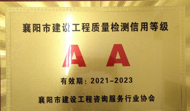 漢江城建正實檢測公司榮獲2020年度AA級信用檢測機構