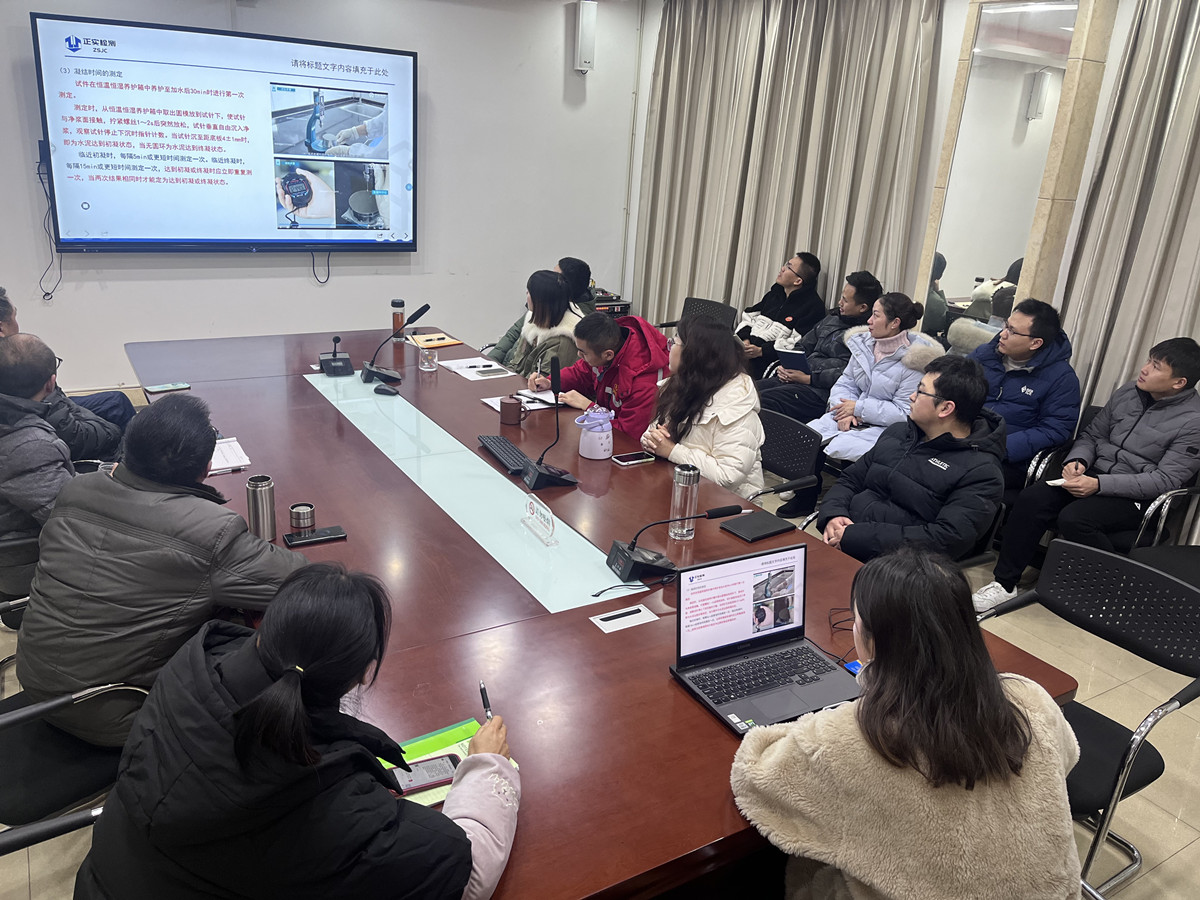 為進(jìn)一步加強(qiáng)正實(shí)建設(shè)工程質(zhì)量檢測(cè)有限公司的建設(shè)和管理,規(guī)范試驗(yàn)檢測(cè)工作,提升試驗(yàn)人員整體業(yè)務(wù)水平,保證試驗(yàn)檢測(cè)質(zhì)量。12月15號(hào),正實(shí)公司組織全體員工在二樓會(huì)議室開(kāi)展了水泥實(shí)驗(yàn)?zāi)芰ε嘤?xùn)。
