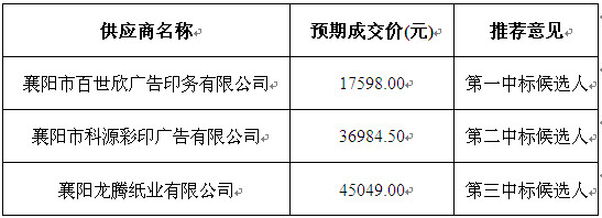 各供應(yīng)商及其他利害關(guān)系人對詢比評審結(jié)果有異議的,在此公示發(fā)布之日起3日內(nèi)以書面形式向襄陽市政建設(shè)集團有限公司監(jiān)察審計部提出質(zhì)疑,逾期不再受理。