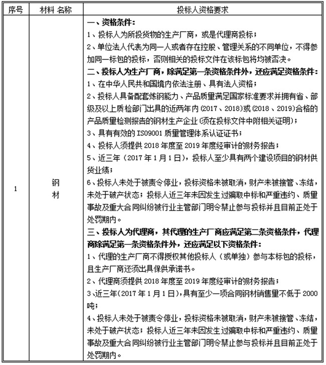 本次招標(biāo)內(nèi)容為:鋼材,標(biāo)包劃分情況、擬招標(biāo)數(shù)量、交貨地點(diǎn)及供貨期詳見下表: