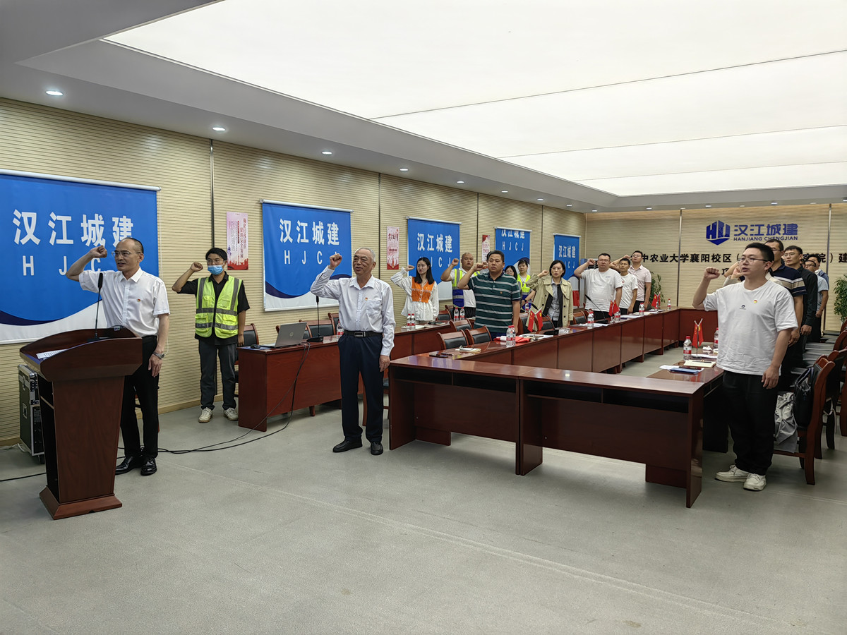 為進(jìn)一步學(xué)習(xí)和發(fā)揚(yáng)“鐵軍精神”,不斷加強(qiáng)基層黨組織的凝聚力和戰(zhàn)斗力,打造精品工程和廉潔工程,5月26日下午,漢江城建建安分公司黨支部聯(lián)合東津新區(qū)城鄉(xiāng)建設(shè)局、智投公司、中韜華勝監(jiān)理公司、漢江城建第二分公司四個支部在華中農(nóng)業(yè)大學(xué)襄陽校區(qū)(現(xiàn)代農(nóng)業(yè)研究院)建設(shè)項(xiàng)目部共同舉辦“黨建進(jìn)工地 強(qiáng)化責(zé)任擔(dān)當(dāng)”主題黨日活動,共50余人參會。