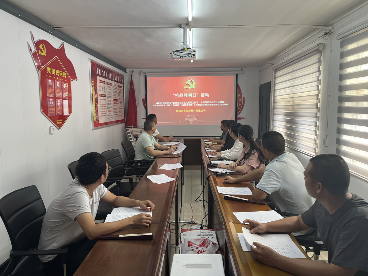 為了全面貫徹黨的二十大精神,常態(tài)化長效化開展“四史”宣傳教育,認(rèn)真落實市委宣傳部印發(fā)的《關(guān)于在抗戰(zhàn)勝利日等重要節(jié)點開展群眾性主題宣傳教育活動的通知》,近日,新材料公司組織全體黨員及所有崗位職工,圍繞抗戰(zhàn)勝利日節(jié)點開展宣傳教育活動,激勵廣大群眾銘記歷史、勿忘國恥。
