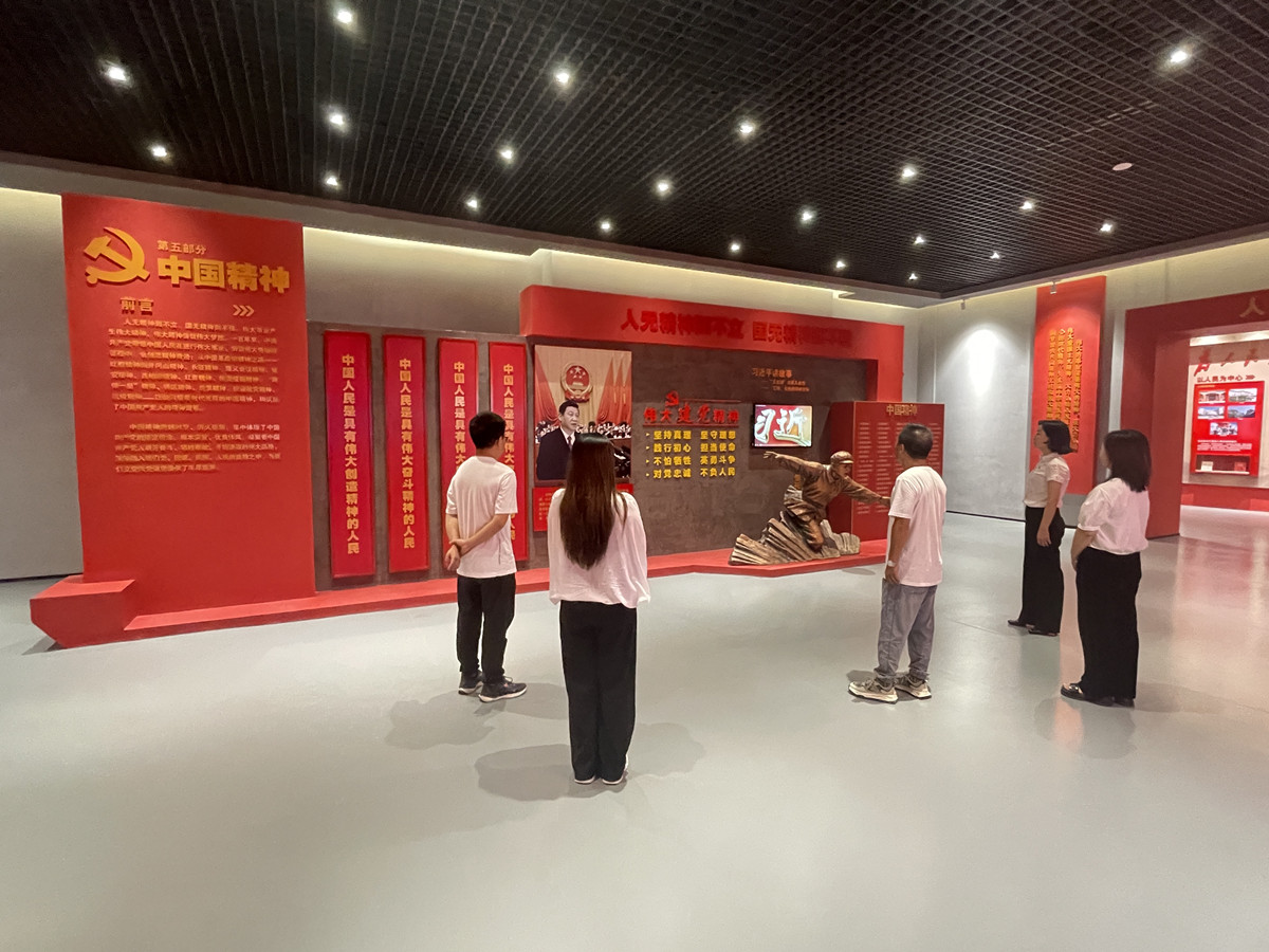活動伊始,全體黨員在黨支部書記崔海玲同志的帶領(lǐng)下齊唱國歌、重溫入黨誓詞,錚錚誓言,體現(xiàn)了黨員同志們對中國共產(chǎn)黨的無限忠誠,堅定了入黨使命,奮斗初心。隨后,在講解員的引導(dǎo)下,全體黨員干部先后參觀了“不忘初心、牢記使命”主題教育基地的八大主題展館,全體黨員干部職工通過現(xiàn)場互動、觸屏體驗(yàn)、討論交流等多種形式,沉浸其中,感悟中國共產(chǎn)黨的初心和使命,汲取偉大建黨精神力量。