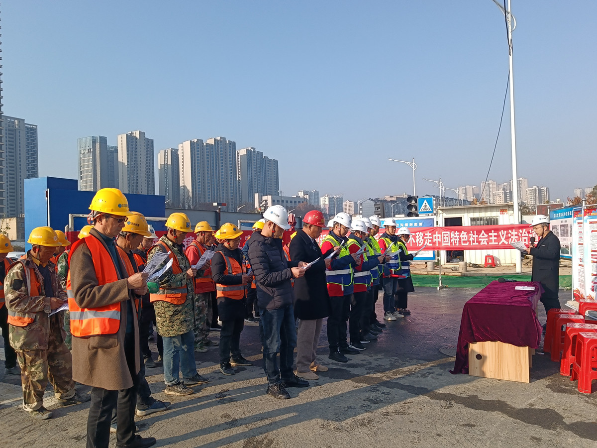 12月4日,漢江城建第一分公司聯(lián)合清河口街道辦事處在沿江大道東延伸段新建工程,以“大力弘揚憲法精神 建設(shè)社會主義法治文化”為主題開展憲法宣傳活動。