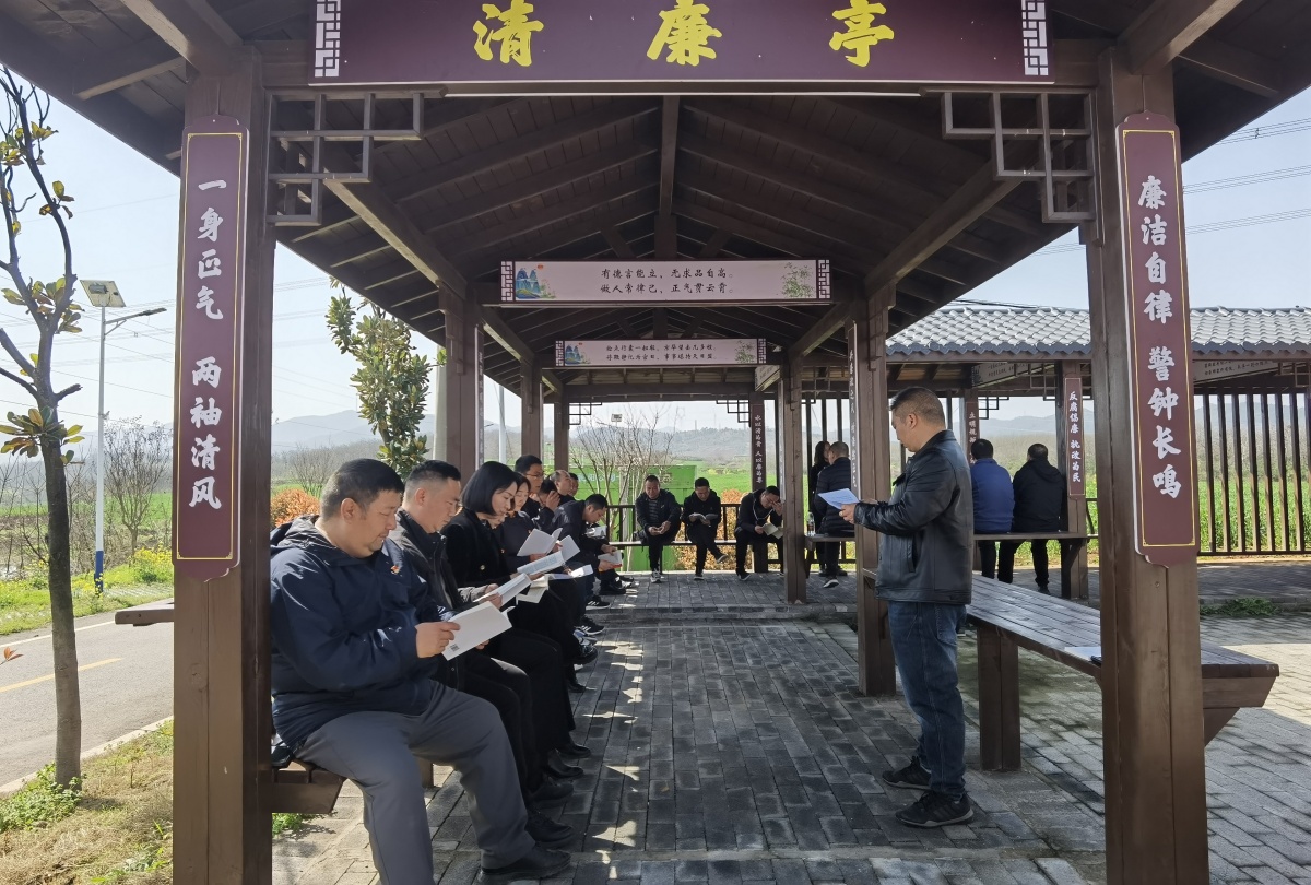 圖為漢江城建第三分公司、新材料公司、交安公司黨支部走訪襄東革命紀(jì)念館清廉亭開(kāi)展集中學(xué)習(xí)活動(dòng)現(xiàn)場(chǎng)