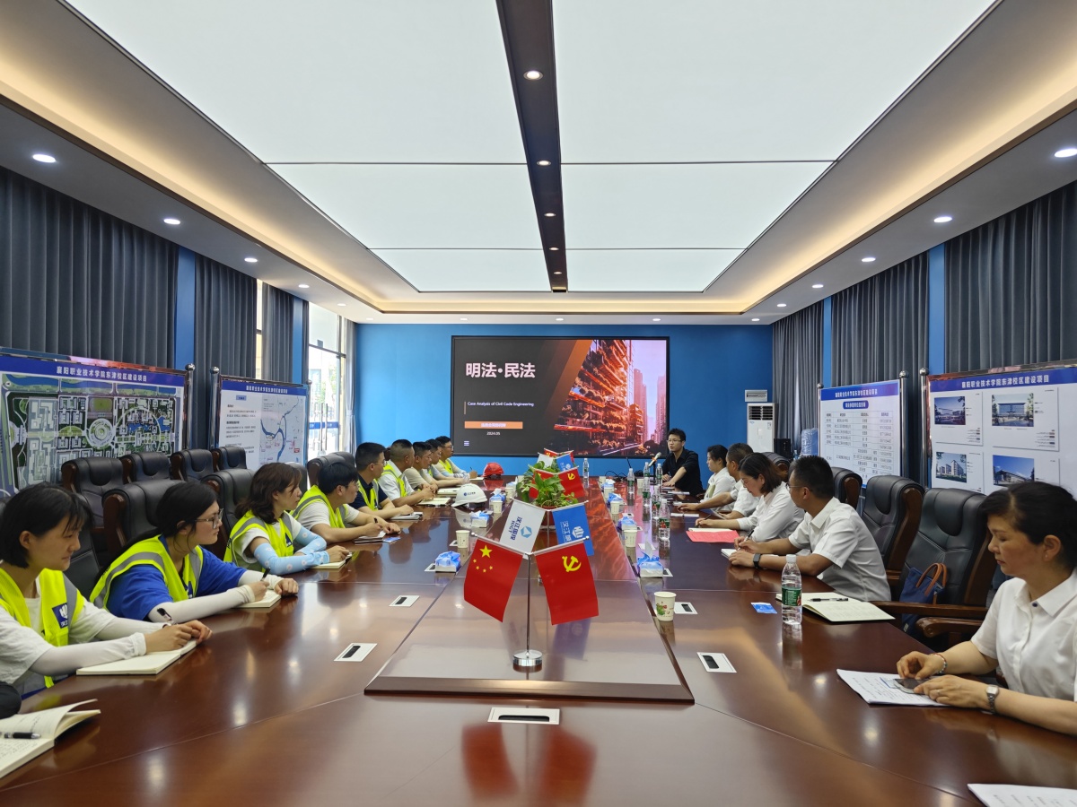 為深入學習宣傳貫徹習近平法治思想,進一步做好民法典普法工作,提升項目一線工作人員尊法、學法、守法、用法意識,5月17日上午,漢江城建特邀漢江國投法務合同部走進襄陽職業(yè)技術(shù)學院東津校區(qū)遷建項目,開展“民法典法律進工地”普法宣傳活動。