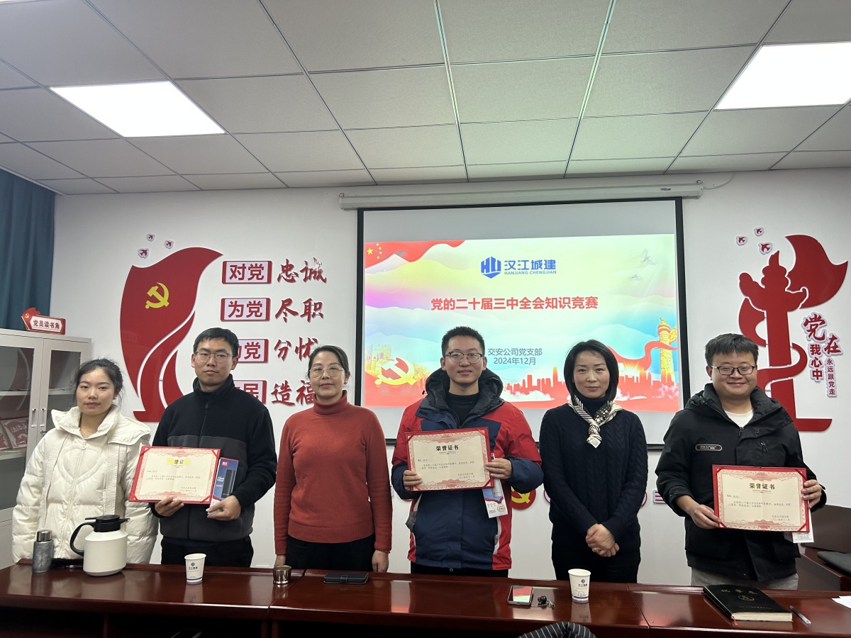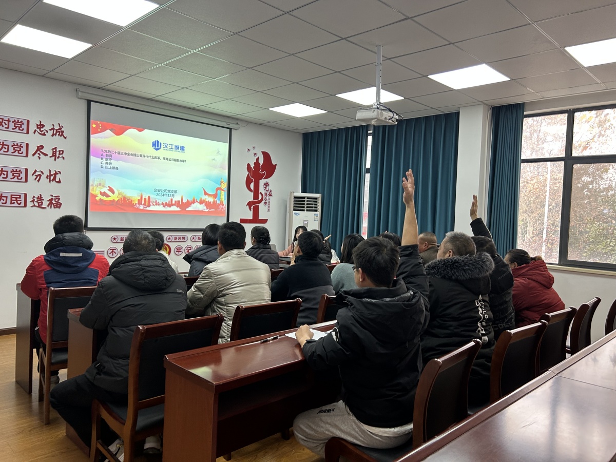 為深入學(xué)習(xí)宣傳貫徹黨的二十屆三中全會(huì)精神, 引導(dǎo)全體員工心向黨、學(xué)精神、悟思想,激發(fā)學(xué)習(xí)熱情,12月24日,交安公司黨支部舉辦“黨的二十屆三中全會(huì)知識(shí)競(jìng)賽”活動(dòng)。本次活動(dòng)特邀集團(tuán)黨群部到會(huì)指導(dǎo),全體職工參賽。