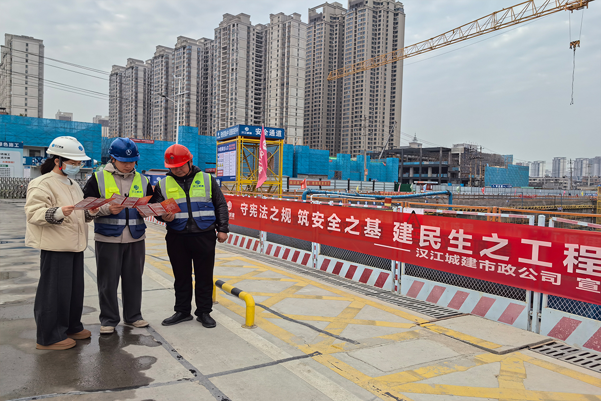 12月4日,在第十二個(gè)國(guó)家憲法日來臨之際,市政公司在陳老巷歷史文化街區(qū)更新改造項(xiàng)目EPC總承包項(xiàng)目部,開展以“守憲法之規(guī) 筑安全之基 建民生之工程”為主題的憲法宣傳教育活動(dòng),將法治精神融入工程建設(shè)一線。