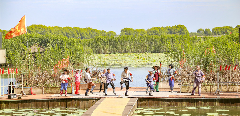 參觀湘鄂西蘇區(qū)洪湖水上游擊戰(zhàn)場(chǎng),觀看《洪湖赤衛(wèi)隊(duì)》實(shí)景演出。通過(guò)實(shí)地觀看演出,讓學(xué)習(xí)者了解革命時(shí)期在洪湖發(fā)生的革命事件,重溫歷史。