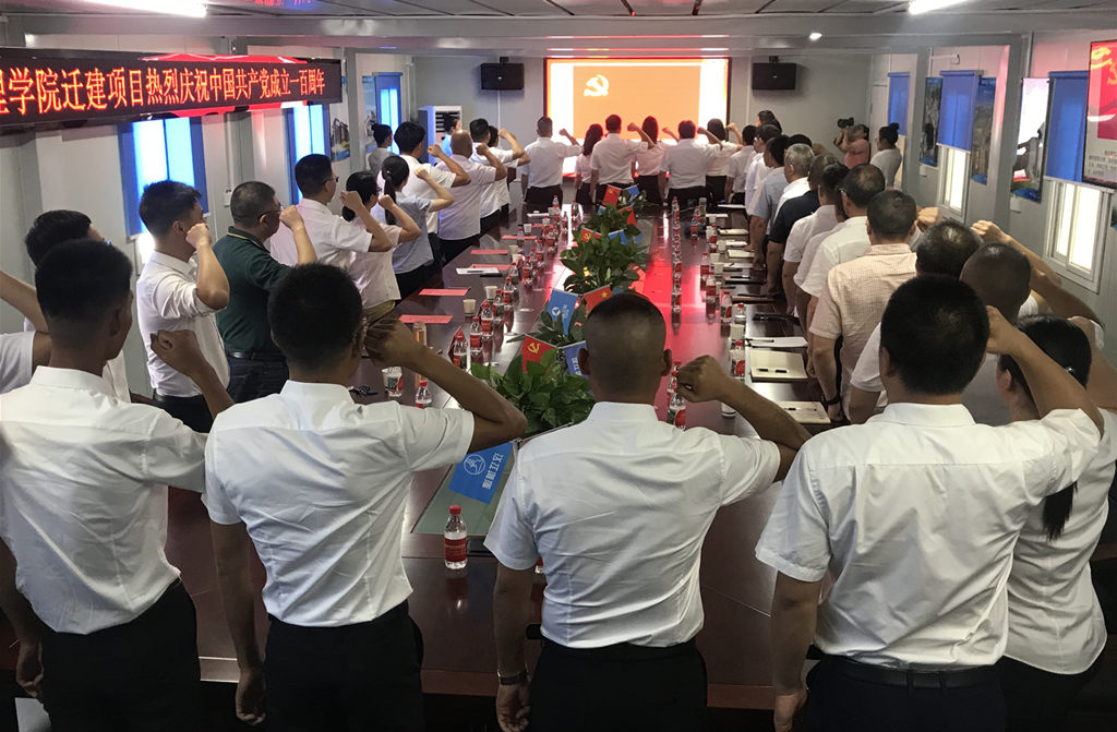 為熱烈慶祝中國共產(chǎn)黨百年華誕,7月1日下午,漢江城建黨委領(lǐng)導(dǎo)帶領(lǐng)各支部書記、各分(子)公司經(jīng)理約20余人赴湖北文理學(xué)院遷建項目部與項目部黨員及管理人員共同舉辦主題黨建活動。本次活動主要圍繞湖北文理學(xué)院遷建項目創(chuàng)“黨建示范項目”啟動儀式暨新黨員入黨宣誓儀式展開。