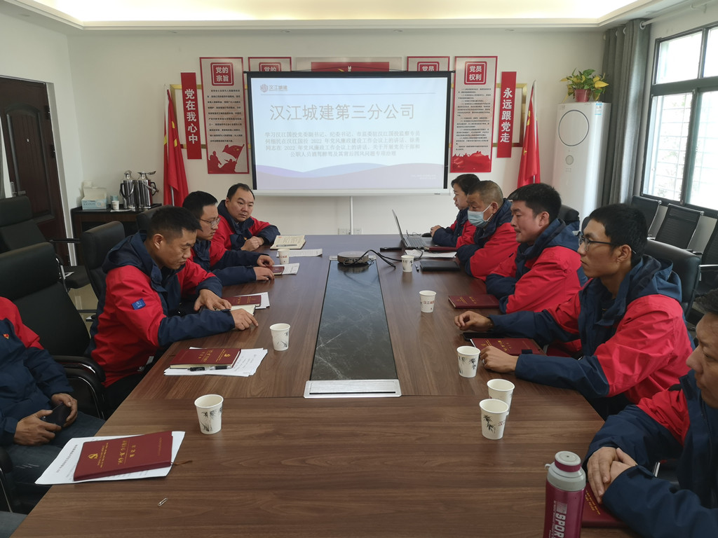 為深入貫徹學(xué)習(xí)漢江國投 2022 年黨風(fēng)廉政建設(shè)工作會(huì)議精神,落實(shí)監(jiān)察審計(jì)部相關(guān)要求,3月18日,第三分公司組織全體黨員干部召開了專題學(xué)習(xí)會(huì)議,會(huì)議由支部書記李愛國同志主持。