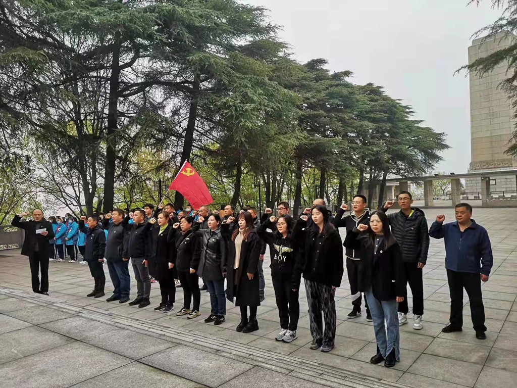 在莊嚴(yán)肅穆的烈士陵園中,我們悼念,我們品讀,我們銘記。首先,第三分公司、新材料公司、實(shí)力工程處的黨支部書記和經(jīng)理代表全體黨員向烈士紀(jì)念碑敬獻(xiàn)了花籃,其余黨員同志們依次上前獻(xiàn)上了寄托敬仰之情的黃色小菊花,表達(dá)了對(duì)先烈們的崇敬與尊重;接著,全體黨員默哀三分鐘并深深彎腰鞠躬向先烈們表示了沉痛的哀思。默哀結(jié)束后,在場(chǎng)的全體黨員們?cè)谛虏牧瞎军h支部書記孔慶銳的帶領(lǐng)下一起重溫了入黨誓詞。鏗鏘有力的入黨誓詞,紀(jì)念了那段戰(zhàn)火紛飛的光榮歲月。實(shí)力工程處黨支部書記程建現(xiàn)場(chǎng)為大家講述了革命英烈羅忠毅的英雄事跡,告誡大家,緬懷英烈是為了更好地在新時(shí)代砥礪前行。隨后,入黨積極分子代表發(fā)言,歌頌了革命先烈的偉大事跡,認(rèn)識(shí)到自己身上肩負(fù)的歷史重任,更要努力奮斗,珍惜如今的幸福生活。